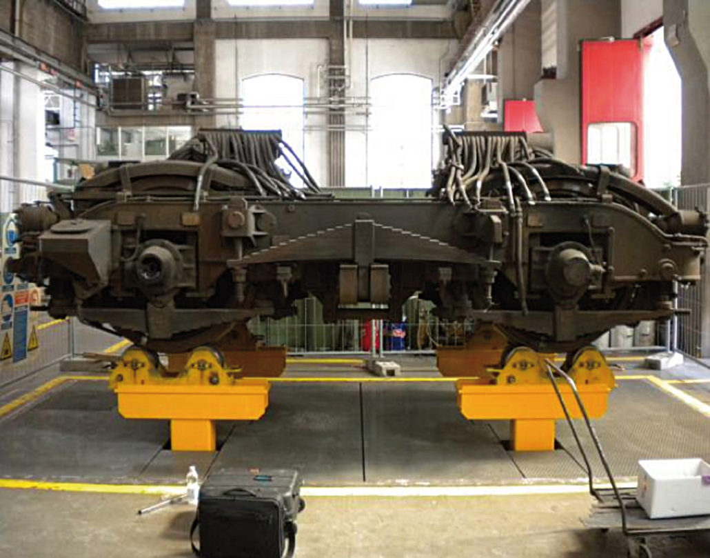 Il macchinario consiste in un sollevatore, che assicura un più facile accesso all’area di lavoro, con n.4 colonne indipendenti su ciascuna delle quali si appoggia una delle ruote di un carrello del peso max. di oltre 25 ton.; la macchina è attuata meccanicamente con una motorizzazione elettrica ed una trasmissione comprendente una coppia di appositi martinetti di sollevamento dimensionati con ampio margine di sicurezza (30 x 2 = 60 ton.). Particolare cura viene dedicata a non sovraccaricare la meccanica della trasmissione con componenti flessionali non adeguatamente bilanciate per ragioni di affidabilità e durata nel tempo.
